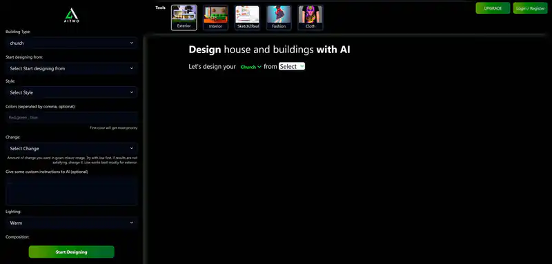 AITWO — это инструмент, который позволяет проектировать дома и здания с помощью искусственного интеллекта. Выберите тип здания, начните проектирование с нуля или используйте готовый стиль, определите цвета и другие параметры, и AI сгенерирует дизайн для вас. Полученные изображения могут быть общедоступными или приватными, в зависимости от вашего выбора. Дайте волю своей фантазии и создайте уникальный дизайн с AITWO.