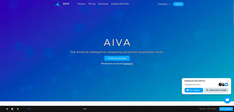 AIVA — это искусственный интеллект, способный сочинять эмоциональную саундтрековую музыку. Независимо от того, являетесь ли вы независимым разработчиком игр, полным новичком в музыке или опытным профессиональным композитором, AIVA помогает вам в творческом процессе. Создавайте захватывающие темы для своих проектов быстрее, чем когда-либо, используя мощь музыки, созданной искусственным интеллектом.