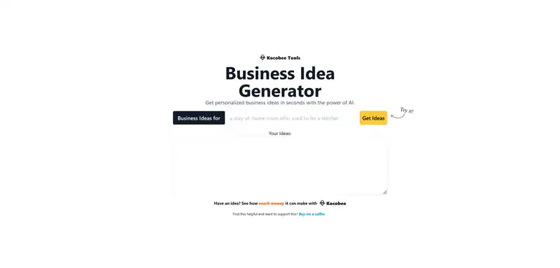 Kocobee Tools — это мощный генератор идей для бизнеса, который использует искусственный интеллект, чтобы предложить вам персонализированные идеи для вашего будущего бизнеса. Просто попробуйте и узнайте, насколько прибыльным может быть ваша идея. Если вам нравится наш сервис и вы хотите поддержать нас, купите нам кофе.