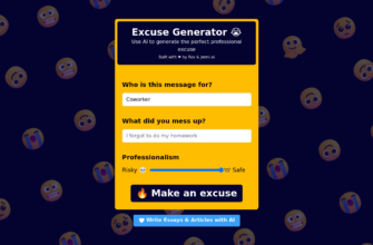 Excuses Generator – незаменимый помощник, если вам необходимо подготовить какое-либо извинение. Например, Excuses Generator
