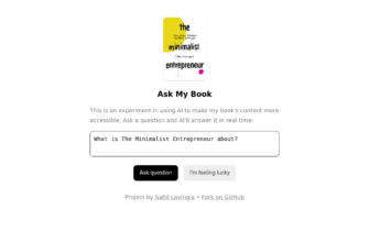 Ask My Book – небольшой инструмент, заточенный под книгу “The Minimalist Entrepreneur: How Great Founders Do More with Less”