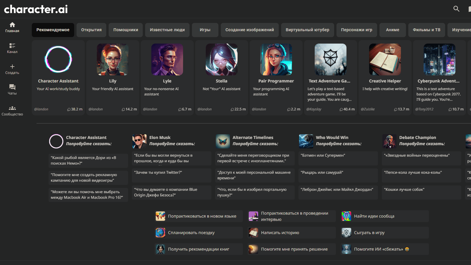 Character AI – искусственный интеллект, который способен заменить вам помощника или стать настоящим виртуальным другом. Вы можете общаться с Character AI (сокращенно C.AI) на любые темы и получать точные ответы на свои вопросы. В отзывах пользователей Character AI много упоминаний, что ИИ работает настолько правдоподобно, что складывается впечатление, что вы общаетесь с живым человеком. Инструмент также способен решать практические задачи, например, спланировать поездку или написать короткую историю.