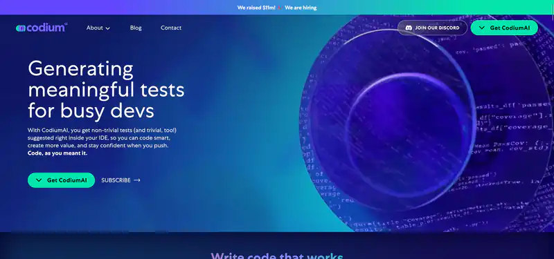 CodiumAI и представляет собой инструмент для автоматической генерации тестового кода. Он предлагает разработчикам возможность получать предложения по необычным и простым тестам непосредственно в их интегрированной среде разработки (IDE), таких как VS Code и JetBrains. CodiumAI анализирует код, докстринги и комментарии, взаимодействует с пользователем и предлагает тесты, которые можно принять и применить. Сайт подчеркивает значимость написания тестового кода, который позволяет разработчикам повысить качество своего кода, сократить время на написание тестов и улучшить их покрытие. CodiumAI поддерживает язык программирования Python и планирует добавить поддержку JavaScript, TypeScript, Java и других языков в будущем.