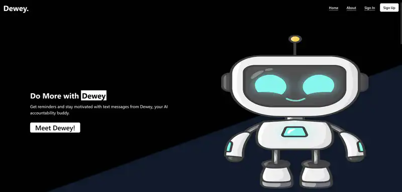 Dewey — это инновационный сервис, который помогает людям оставаться организованными и продуктивными. Благодаря функции напоминаний и отслеживания прогресса, Dewey действительно является вашим личным AI-помощником, который всегда на связи с вами по SMS. Не теряйте время на поиск ответов в Google, Dewey ответит на все ваши вопросы. Получите персонализированные напоминания и советы, чтобы оставаться на верном пути, и сделайте свои привычки более устойчивыми. Начните делать больше с Dewey уже сегодня!