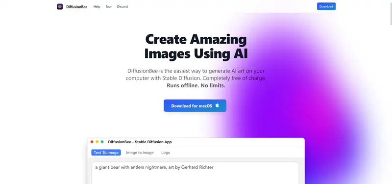 DiffusionBee предлагает программное обеспечение для создания и редактирования искусственного интеллекта (AI) на вашем компьютере с использованием Stable Diffusion. Сайт предлагает различные функции для генерации AI-артов, включая генерацию изображений на основе текстовых подсказок, модификацию существующих изображений, добавление и удаление объектов, увеличение разрешения изображений и многое другое. Все генерация происходит локально, без отправки данных в облако. Проект также имеет активное сообщество на платформе Discord, где можно задать вопросы и обсудить результаты.