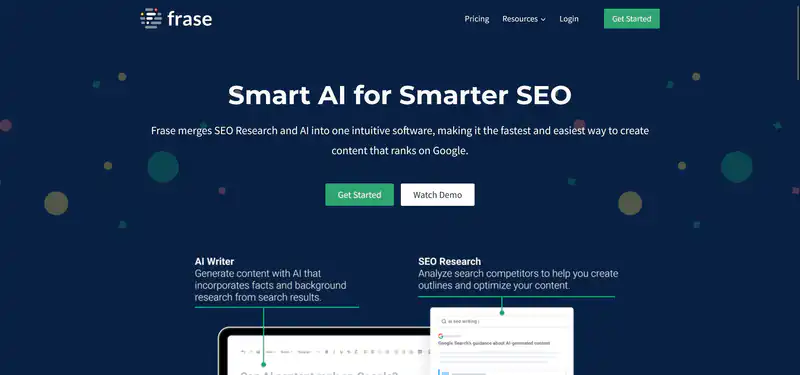 Frase объединяет исследования SEO и искусственный интеллект в одном интуитивно понятном программном обеспечении, делая его самым быстрым и простым способом создания контента, который будет ранжироваться в Google.