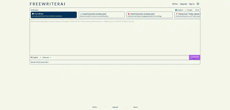 Сайт FreewriterAi представляет собой инструмент для облегчения процесса написания текстов. Он позволяет автору находить баланс между свободой выражения своих идей и необходимостью контролировать поток информации и выбор слов. FreewriterAi помогает справиться с этой задачей благодаря своей способности объединять свободу и структуру. На сайте также доступен платный PRO-аккаунт для более широкого функционала.