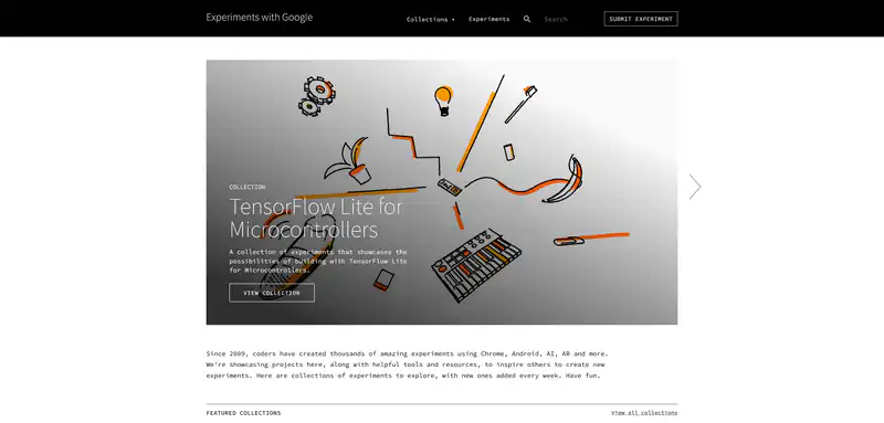 Этот сайт представляет собой коллекцию экспериментов, созданных разработчиками Google с использованием технологий и инструментов, таких как Chrome, Android, искусственный интеллект, дополненная реальность и многое другое. В коллекциях экспериментов вы найдете множество увлекательных проектов, которые демонстрируют возможности этих технологий и вдохновляют на создание новых. Здесь также можно найти полезные инструменты и ресурсы для разработчиков.