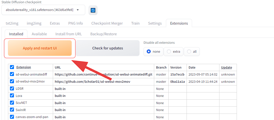 После перезапуска вы сможете генерировать изображения с использованием новой модели.