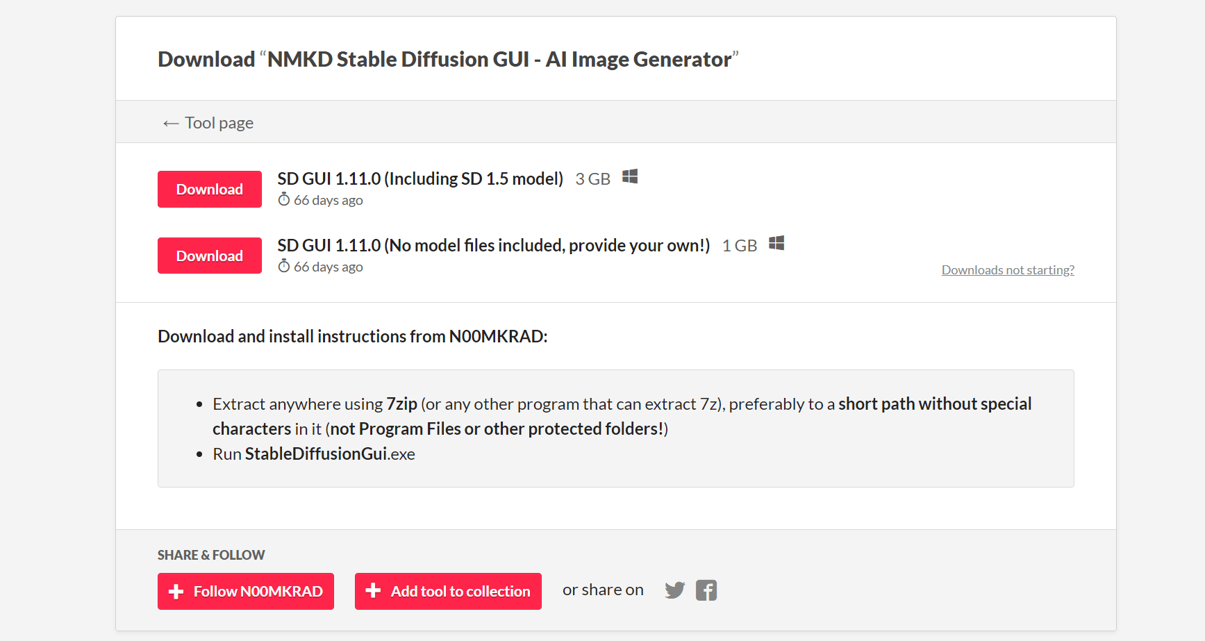 NMKD Stable Diffusion GUI – бесплатный клиент-установщик Stable Diffusion для компьютеров на базе Windows ОС. Процесс установки максимально прост: