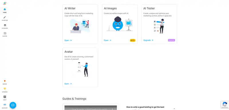 А на вкладке «Guides & Trainings» вы можете научиться, как написать хороший брифинг и какая технология стоит за Neuroflash.