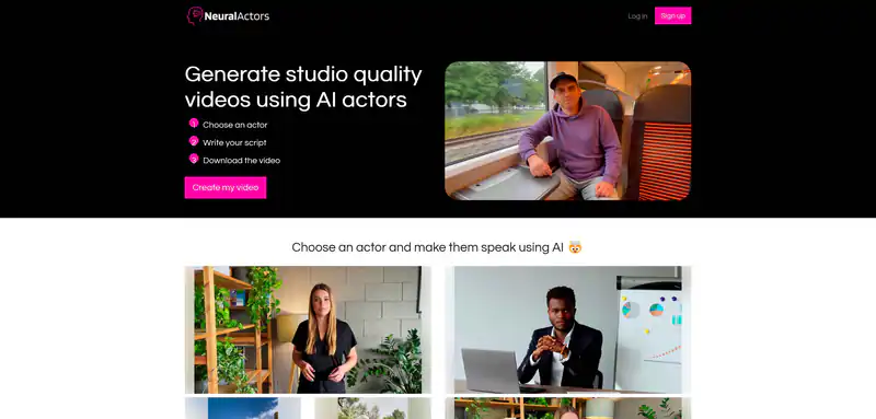 Данный сайт позволяет создавать профессиональные видео с использованием ИИ актеров. Выберите актера, напишите сценарий и скачайте готовое видео. Используйте гипер-реалистичных актеров в реальных средах или создавайте видео с помощью ИИ актеров, говорящих в режиме селфи. Начните использовать Neural Actors прямо сейчас и создавайте профессиональные видео всего за несколько минут!