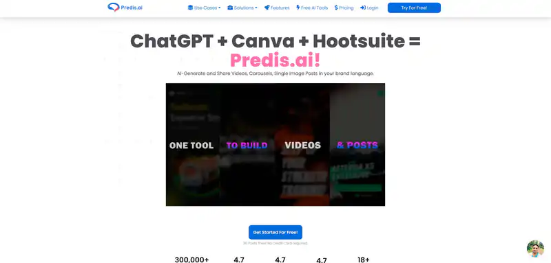 Predis.ai — это платформа, которая использует искусственный интеллект для генерации и рекомендации контента для социальных сетей. С помощью Predis.ai вы можете создавать видео, изображения и тексты для различных платформ в соответствии с вашим брендом. Predis.ai также предоставляет бесплатные инструменты, такие как генератор хэштегов, подбор цветовой палитры и поиск фотографий. С более чем 300 000 пользователей в 30 странах, Predis.ai — это надежный партнер для предпринимателей, маркетологов и контент-мейкеров.