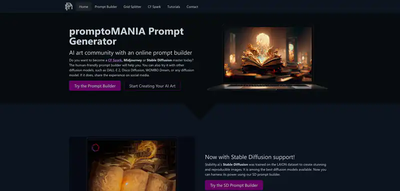 promptoMANIA — это онлайн-сообщество AI-искусства с возможностью генерации художественных работ с помощью искусственного интеллекта. Они предлагают инструменты, такие как Prompt Builder, Grid Splitter и поддержку Stable Diffusion, чтобы помочь пользователям создавать удивительные и воспроизводимые изображения. С помощью Prompt Builder вы можете создавать эффектные и качественные AI-картины, указывая параметры и подробности, а затем генерировать изображение. Grid Splitter позволяет разделить одно изображение на несколько меньших изображений, полученных с помощью Midjourney или Stable Diffusion. promptoMANIA предоставляет бесплатные инструменты, доступные каждому, и поддерживает несколько моделей диффузии, таких как CF Spark, Midjourney и Stable Diffusion.