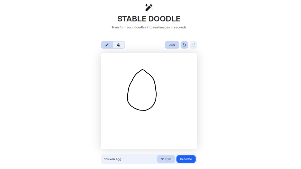 STABLE DOODLE – инструмент на базе ИИ, который переводит наброски картинок в качественные изображения. Например, вы можете схематично изобразить куриное яйцо, задать текстом описание этого объекта, и STABLE DOODLE сгенерирует вам уникальную картинку яйца. Само название сервиса “DOODLE” полностью отражает функционал проекта, так как переводится с английского языка – “Каракули”. Благодаря нейросети вы можете превратить ваши “каракули” в качественные картинки на различную тему.