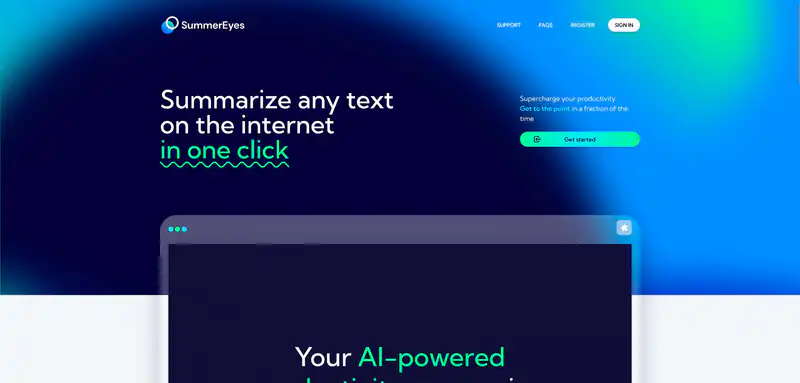 SummerEyes представляет инструмент, который позволяет суммировать любой текст в Интернете всего одним нажатием. Он помогает повысить продуктивность, позволяя сократить время чтения и сфокусироваться на сути информации. С помощью SummerEyes можно быстро получить краткое содержание статей и писем, обнаруживая главное в огромном объеме текста. Сайт предлагает быстрые и удобные резюме, доступные прямо в браузере без необходимости переключаться между приложениями или копировать текст. SummerEyes использует передовые технологии обработки естественного языка для чтения, понимания и переработки текста.
